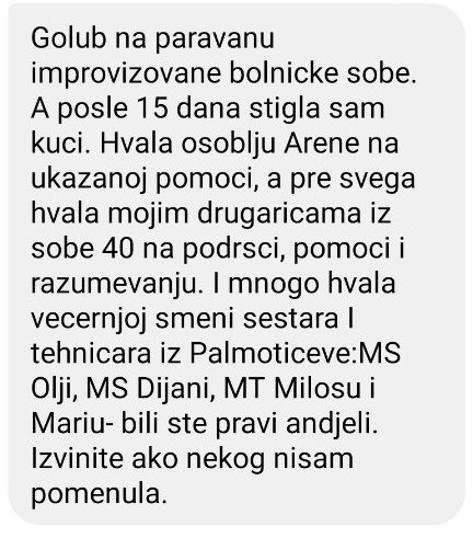 Пацијенти из привремене ковид болнице Арена о медицинским сестрама/техничарима Института за ментално здравље