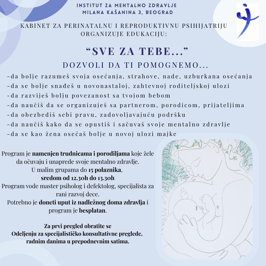 Кабинет за перинаталну и репродуктивну психијатрију организује едукацију: "Све за тебе..."