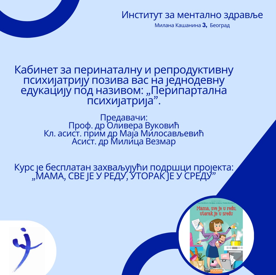 Кабинет за перинаталну и репродуктивну психијатрију позива вас на једнодневну едукацију под називом :
